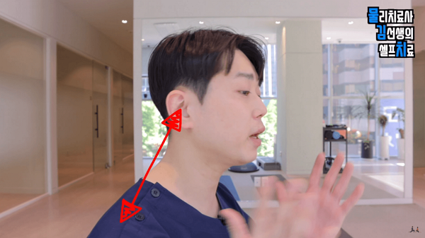 목을 돌리는 방향에서 통증이 발생하면 그 방향에 붙어 있는 흉쇄유돌근을 잡고 목을 돌리면 됩니다. 만약 양쪽 모두 아프다면 양쪽 번갈아가면서 10회씩 진행하면 됩니다.