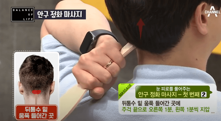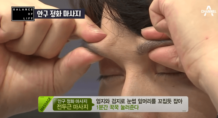 과거 채널A의 나는 몸신이다에서는 눈에 손대지 않고도 눈 피로도를 풀고 잘 보이게 하는 마시지 방법이 소개되었습니다. 이날 방송에서는 물리치료사가 직접 어떻게 마사지를 해야 하는지 자세히 설명해 주었습니다.