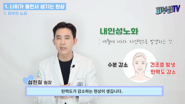 사람은 나이가 들면서 자연스럽게 피부의 노화가 시작됩니다. 내인성 노화는 세월이 흐르면서 자연적으로 발생하는 것으로 수분이 감소하고 건조증이 발생합니다. 결과적으로 탄력도가 감소하게 됩니다.