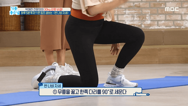 - 한쪽 무릎만 들어서 90도로 세웁니다.