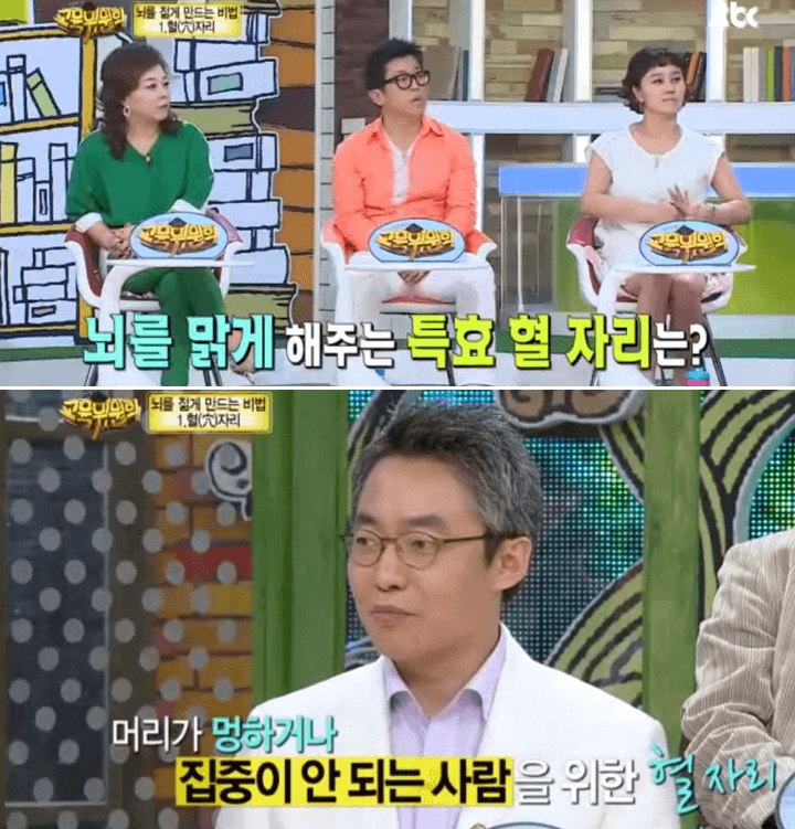 과거 JTBC에서 방송되었던 대한민국 교육위원회 방송에서는 평소에 머리가 멍해지거나 집중이 잘 되지 않는 사람들에게 특효인 혈자리를 소개해줬습니다.