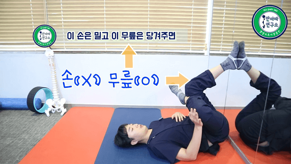 5초 ~ 10초 정도 자세를 유지한 후에 풀어주는 것을 반복하면 됩니다. 반대쪽 다리도 마찬가지로 실시하면 됩니다.