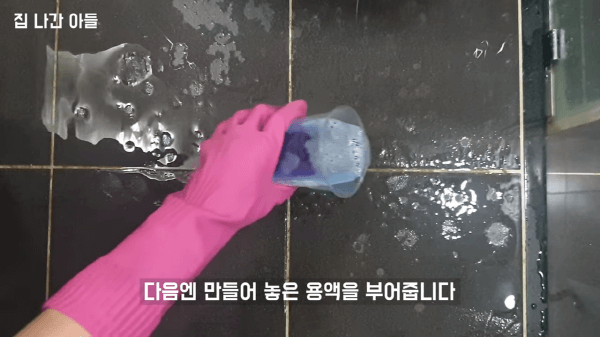 5. 다음으로 만들어 놓았던 청소 용액을 부은 후에 30초 정도 기다려 주세요.