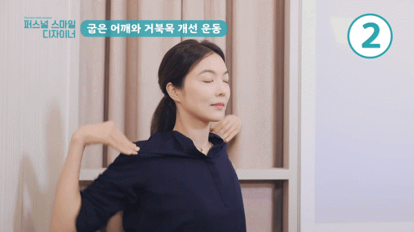 - 어깨 위에 손을 얹으세요. 어꺠를 뒤로 크게 다섯번 돌려줍니다.