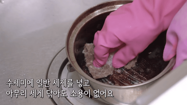하지만 설거지 할 때 딱 하나만 추가한다면 새까맣게 탄 냄비나 찌든 때, 묵은 때가 가득한 냄비를 완전히 새 냄비로 바꿀 수 있습니다. 유튜브 최주부 Choi JuBu 채널에서 자세히 설명해 줬습니다.