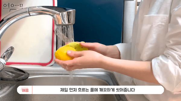 1. 레몬을 흐르는 물에 깨끗하게 씻습니다.