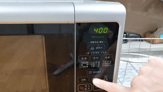 4분 동안 전자레인지를 돌린 후에 바로 문을 열지 않고 3분간 더 기다려 주세요. 전자레인지 내부에 수증기로 찌든 때가 불어날 시간을 주는 것입니다.