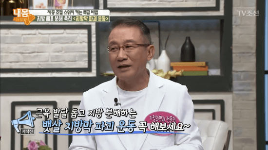 과거 TV조선에서 방송되었던 내 몸 사용설명서 프로그램에서는 가정의학과 전문의가 출연해서 지방 세포 분해를 촉진시키는 지방막 파괴 운동법을 소개해줬습니다.