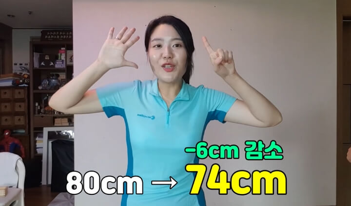 5분간 복식호흡을 한 결과 80cm였던 허리둘레가 무려 74cm로 줄어든 것을 확인할 수 있었습니다. 6cm가 감소한 것으로 나왔습니다.