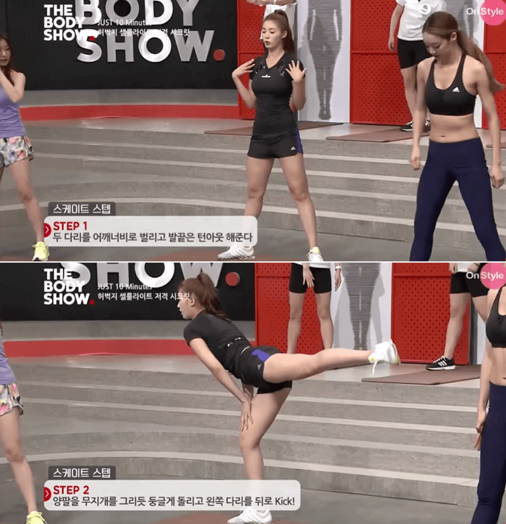 과거 방송되었던 On Style의 THE BODY SHOW에서는 머슬퀸 유승옥이 출연해서 허벅지 안쪽과 바깥쪽의 근육을 자극시키고 허벅지에 보기 좋지 않게 있던 셀룰라이트를 제거할 수 있는 운동법을 자세히 알려줬습니다.
