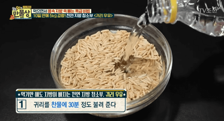 특히 귀리와 OO를 함께 먹으며 몸속에 쌓인 지방을 모조리 흡수해서 배출하기 때문에 다이어트에 아주 좋다고 합니다. 과거 TV조선 살림 9단의 만불상에서는 10일 만에 5kg을 감량한 다이어트 비법으로 귀리 우유 다이어트가 소개되어서 큰 화제가 된 적이 있습니다.