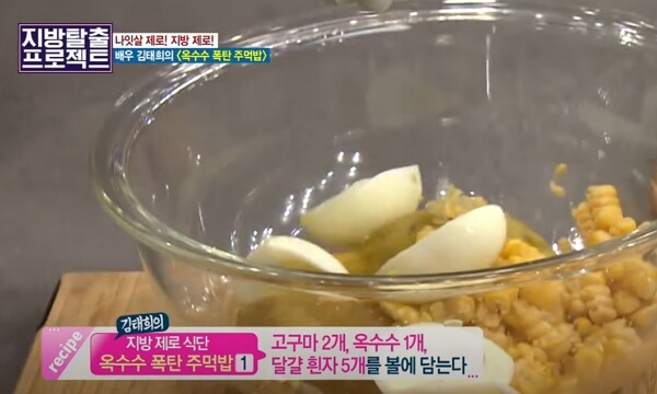 김태희의 다이어트 간식인 옥수수 폭탄 주먹밥을 소개해드렸습니다. 김태희는 평소에 물을 자주 마시는 습관이 있으며 일주일에 3일은 꼭 스포츠센터에 방문해서 운동을 한다고 합니다. 평소에 야식을 좋아하지만 몸매 관리를 위해서 오늘 알려드린 다이어트 간식을 먹는다고 합니다. 여러분도 만들어서 먹어 보세요.
