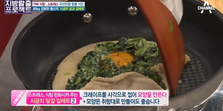 스트레스를 낮춰 주고 식탐도 잡아 줄 시금치 달걀 갈레트가 완성된 모습입니다. 다이어트에 도움이 되고 맛까지 좋기 때문에 다이어터들에게 딱 맞는 음식입니다.