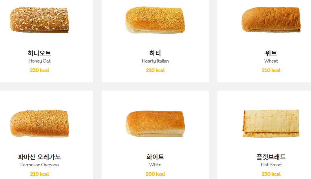 서브웨이를 방문해 봤던 사람이라면 빵 종류가 6가지가 있다는 것을 알고 있을 것입니다. 그렇다면 다이어트를 하는 사람에게 가장 좋은 것은 무엇일까요? 다이어터라면 허니오트 또는 위트를 고르는 것이 좋습니다.