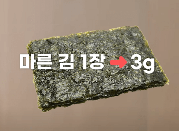 김은 칼로리는 적지만 영양적으로는 굉장히 우수하기 때문에 다이어트 간식으로 딱 좋습니다. 마른 김 1장은 보통 3그램 정도 됩니다. 1장을 먹어도 5 칼로리 밖에 되지 않기 때문에 5장을 먹어도 25 칼로리여서 걱정 없이 먹을 수 있습니다.