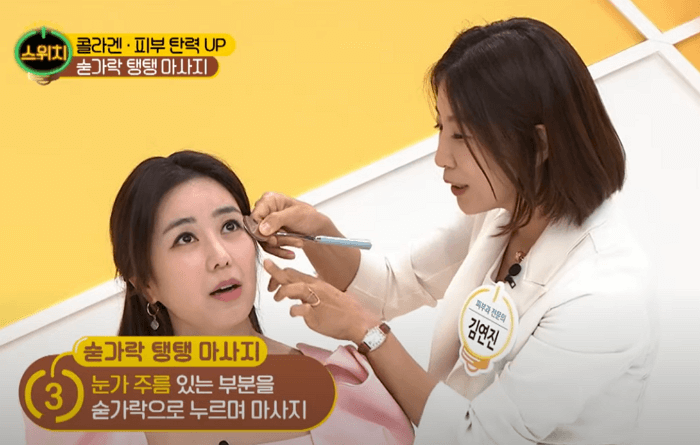 콜라겐이 감소하면 피부에 수분이 빠져나가면서 건조함이 유발되고 주름이 발생하기 쉬운 상태가 됩니다. 따라서 평소에 콜라겐 생성을 돕고 피부 탄력을 높여주는 마사지를 해주면 좋은데요. TV조선에서 방송했었던 스위치라는 프로그램에서 피부과 전문의가 직접 어떻게 하는지 소개해주었습니다.