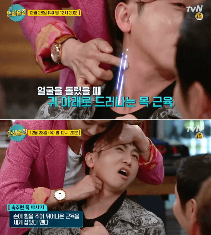 과거 인생술집 방송에서는 옥주현이 출연해서 목 마사지 방법을 알려줬었습니다. 목 근육은 수축이 심할수록 얼굴이 많이 처지게 된다고 합니다. 따라서 목 근육을 풀어주고 근육을 늘려줘야 처지는 것을 막을 수 있다고 합니다. 방법도 정말 간단했습니다.