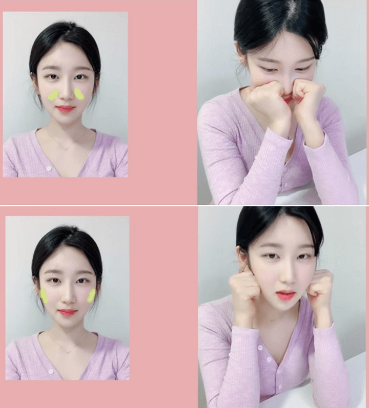 다음으로 눈 밑에 있는 광대뼈 아래 라인에서부터 귀 밑 부분까지 차근 차근 눌러 주세요. 가장 바깥쪽 부분은 주먹을 흔들어서 마사지하면 효과가 좋습니다.